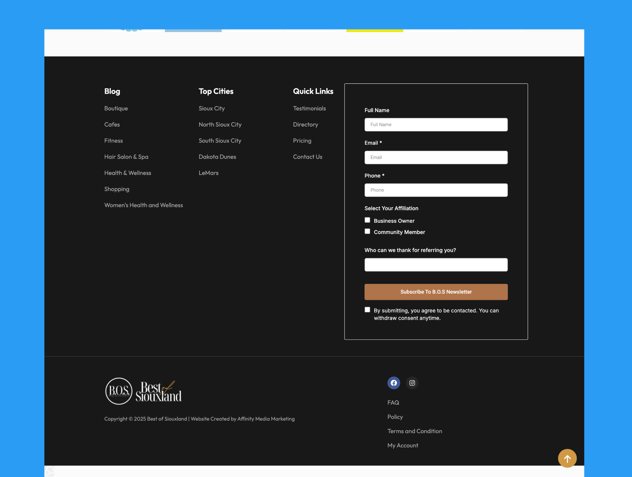 Built comprehensive directory using WordPress with Elementor Pro for design and Directorist plugin for directory functionality. Implemented extensive category taxonomy covering restaurants, retail, professional services, healthcare, entertainment, home services, and more specific to Siouxland area. Created advanced search system with filters by category, location neighborhoods within Siouxland, service type, and ratings. Developed business listing submission forms where owners can add listings with photos, business hours, contact details, service descriptions, and pricing information. Implemented local SEO strategy including location-specific schema markup for businesses, optimized category pages for “Siouxland [business type]” keywords, created location-based landing pages for different Siouxland neighborhoods, and structured data for enhanced local search visibility. Added review and rating system for community feedback, featured listing options for premium visibility, and responsive mobile design for on-the-go local searches.