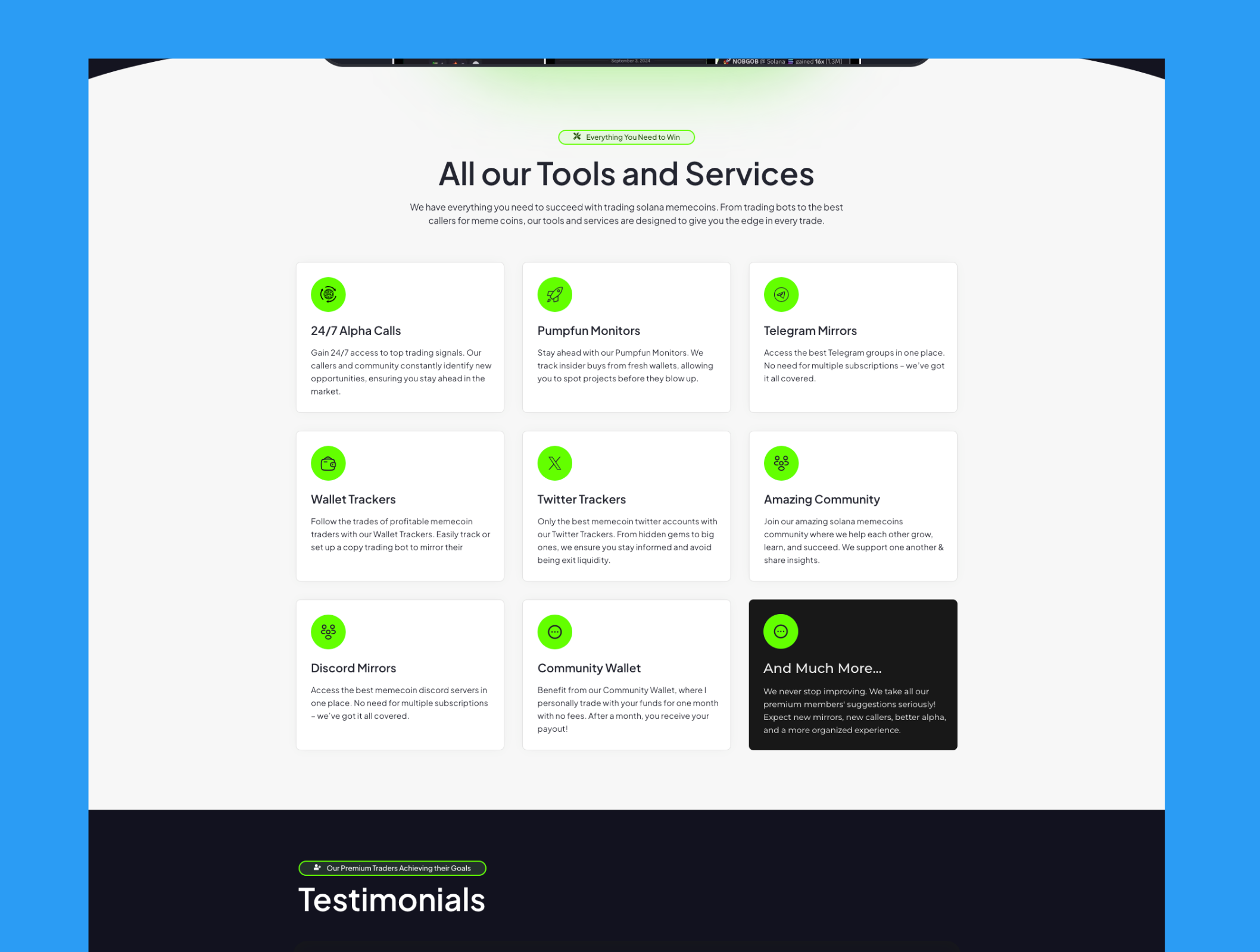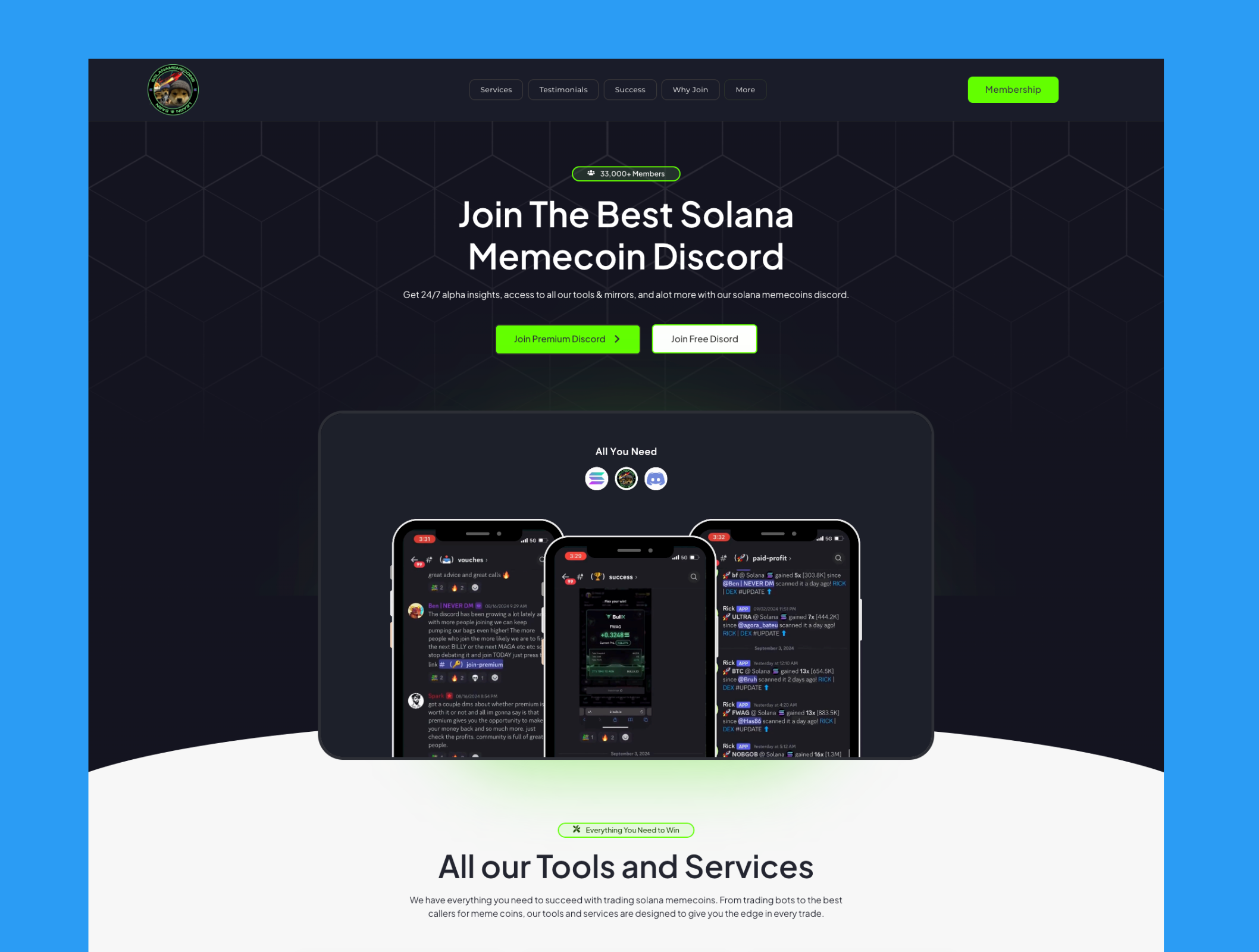Title: Solana Meme Coins - Premium Crypto Trading Discord Community Landing Page